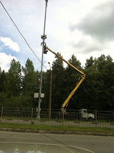 Высотные работы производятся профессиональными альпинистами или с использованием специального транспорта (автовышки).